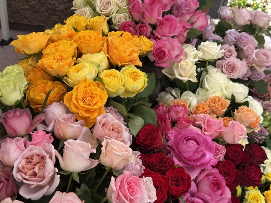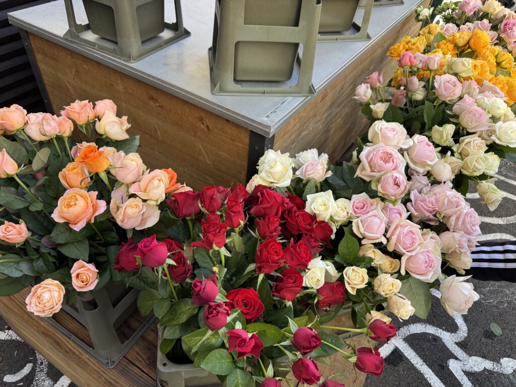 あまり寒くない日で、お客様同士やスタッフともお話ししながらバラを選んでいただけました。